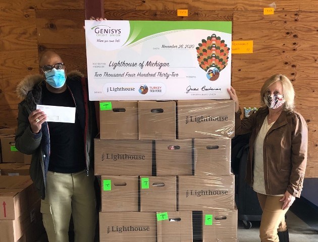 "We are thrilled that Lighthouse will be able to provide Thanksgiving meals for more families than ever before, thanks to the support of Genisys Credit Union,” said Ryan Hertz, Lighthouse President & CEO. “Genisys employees joined together to raise enough funds to provide turkeys for hungry Oakland County families; quite a generous act, and one worthy of celebration during a uniquely difficult year."
