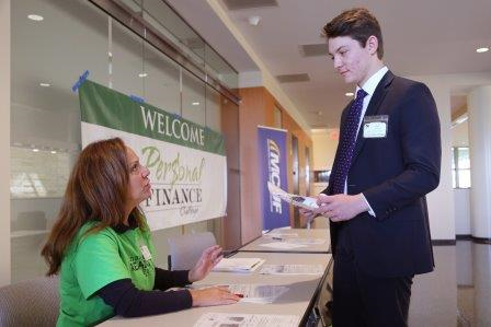 Students then visited different areas, staffed by volunteers, to budget in expenses for housing, food, transportation, phone and Internet, insurance, etc. and income from investments and part-time employment.