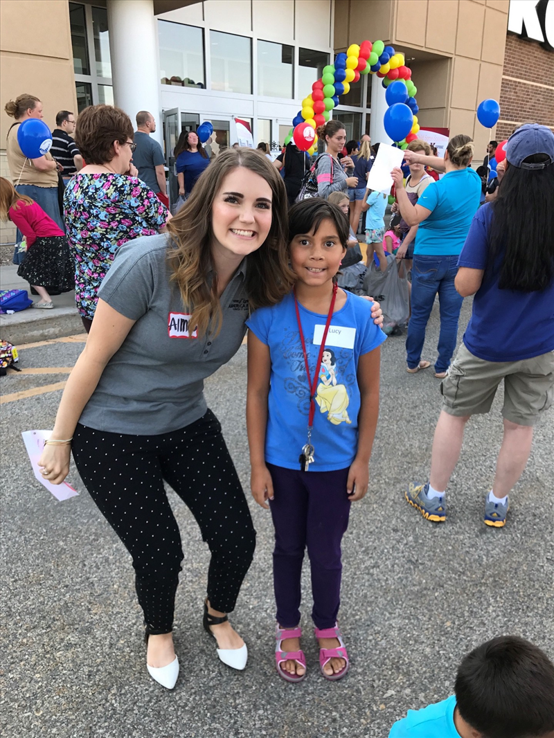 Photo: America First Credit Union employee, Aimee Nelson, stands alongside a student during the Davis Education Foundation Child Spree Friday, Aug. 4 in Layton, Utah.