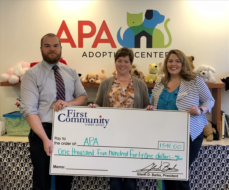 For the month of September, the Animal Protective Agency of Missouri (APA), was selected. Their needs vary day to day, from medical care assistance to blankets for puppy beds. The organization’s Executive Director, Sarah Javier, was excited to welcome some of the First Community staff in to their facility for a tour and show them exactly how a donation helps their organization.