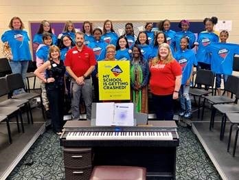 Covington, GA (October 7, 2019) – On October 4, 2019, the students, faculty and staff at Cousins Middle School celebrated the opening of their upgraded music room, thanks to Georgia United Foundation’s sixth annual School Crashers® program.